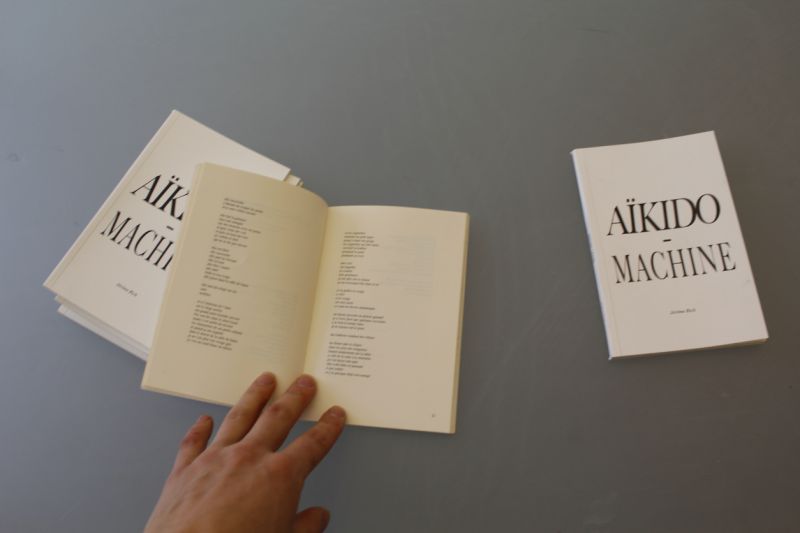 Aikido-machine est un ensemble de texte qui a donné lieu à plusieurs formes, une micro-édition de 50 exemplaire autoédités,